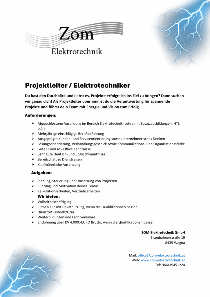Hier findest du unsere aktuellen offenen Stellen im Bereich Elektrotechnik. Wir freuen uns über motivierte Bewerber, die unser Team verstärken möchten.